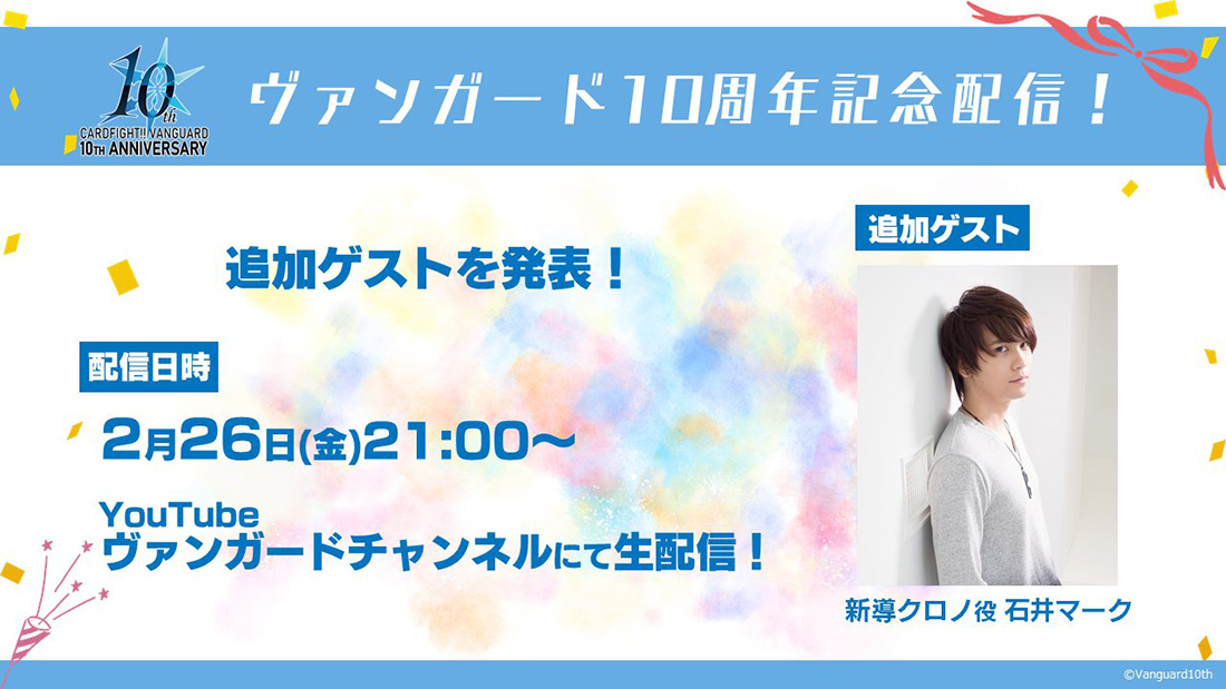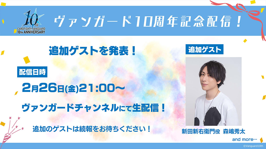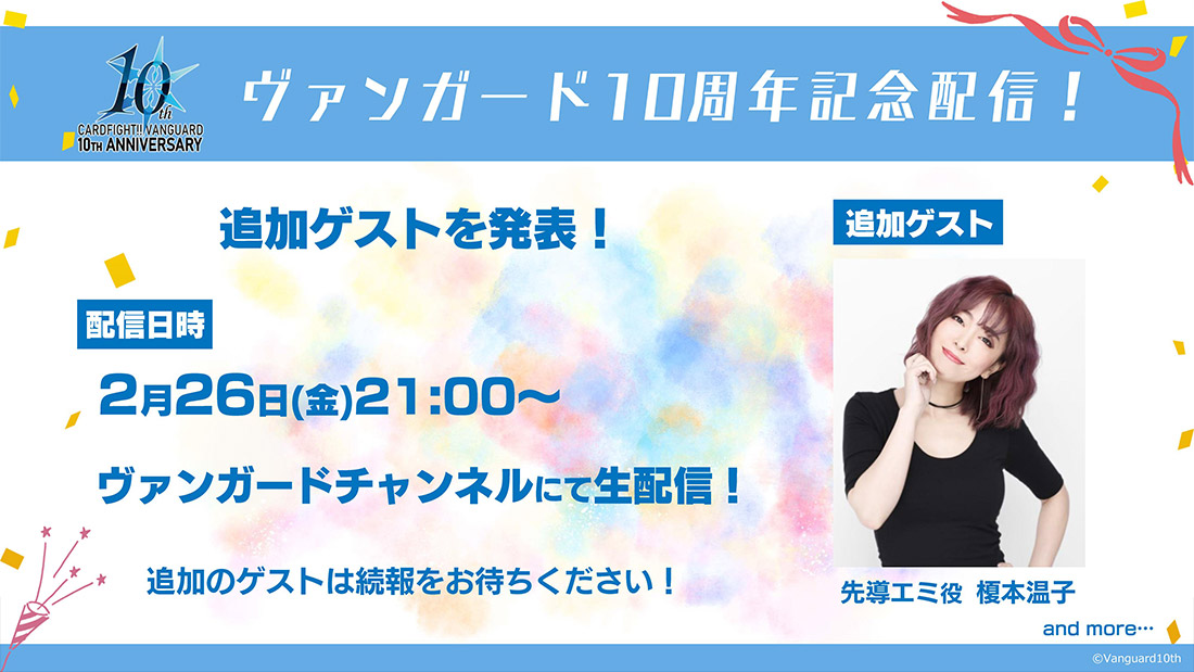 ヴァンガード10周年当日の2月26日(金)、YouTubeのヴァンガードチャンネルにて生配信を行います!